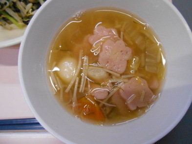 R6.2.21水【本日の給食】まつりじる 明日は、はだか祭りで学校休業日です。 今日の給食には、「まつりじる」には、祭りのもちと梅の花をイメージした材料をつかっていただいていました。 |
