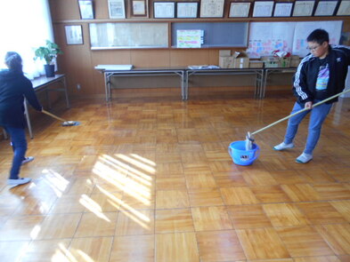 R6.2.26月【6限 委員会】 本年度最後の委員会活動を行いました。美化委員会のみなさんが特別教室や職員室、会議室を油引きしてくれました。とても丁寧にやってくれたので、床がぴかぴかになりました。ありがとうございました。 |