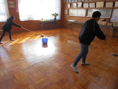 R6.2.26月【油引き】 卒業式を控え、机・いすを出し、油引きの準備をしました。きれいにして来賓の皆様をお迎えしたいと思います。 |