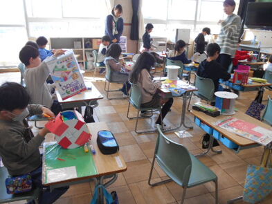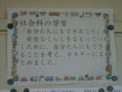 R6.2.28水【3年:3限 図工・廊下掲示】 3年生が社会科で学習した内容「自分たちにもできること」をポスターにまとめたようです。教室の掲示板に貼りきれないポスターが廊下にも掲示してありました。自分が関心をもって調べたことをまとめて、自分の考えとともにアウトプットしていて素敵ですね。 教室の中では、図工で楽しんでいました。磁石の性質を使って遊べる盤をつくって遊んでいました。 |