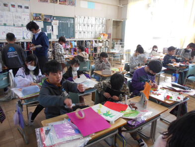 R6.2.28水【5年:3限 社会・廊下掲示】 5年教室廊下には、見ていて楽しくなる多色刷り版画が掲示してあります。 |
