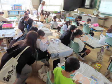 日本歯科大学の一宮 賴子先生をお招きして、歯と口の健康をテーマに学校保健委員会を行いました。4~6年生の児童と、保護者の方が参加しました。一宮先生からのご指導の中で、赤と青の2色のガムを口に入れ、60回かむことで、どのように色が変わるのかを体験しました。歯と口の健康が大切であることを体験を通して学びました。 |