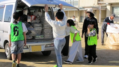 親子の会の皆さん、PTAの皆さんにご協力いただき、第2回資源回収を行いました。今回もたくさんの方々に資源を提供していただきました。ありがとうございます。 |
