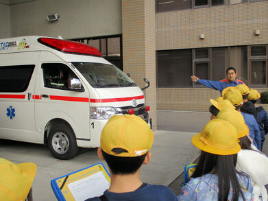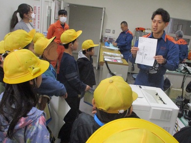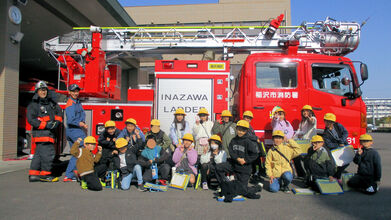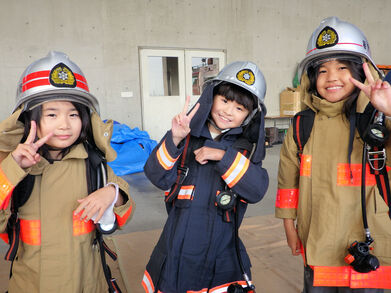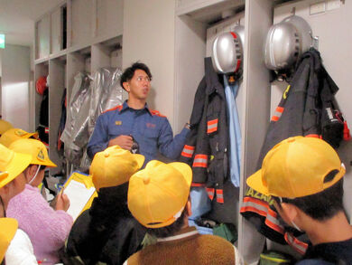 3年生が稲沢市消防本部を見学しました。消防士の方からお話を聞いたり、施設の中を見たりして学習を深めました。消防服を着る体験では、どの子も満足そうに笑顔になりました。 |