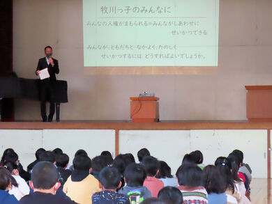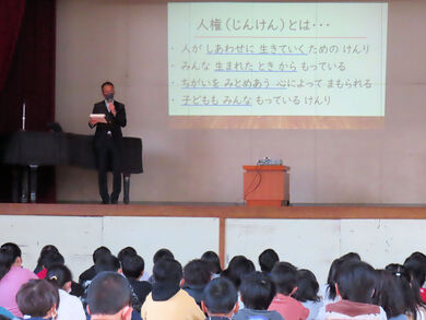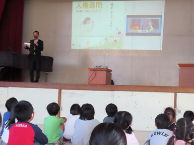 人権の話を聞きました。人権とは何か、人権週間とは何のためにあるのかを知りました。そして、みんなの人権が守られ、みんなが幸せに生活する学校にするにはどうしたらよいのか。じっくりと考えました。 |