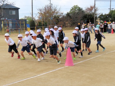 各学年から選ばれたリレー選手が練習に取り組んでいます。「頑張れ!」と互いに声援を送り合い、気持ちよく練習できています。 |