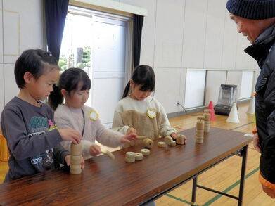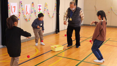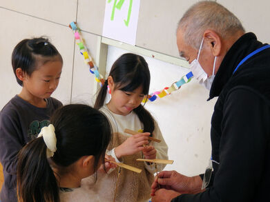 地域の方をお招きして、1年生が古くから伝わる遊び(昔遊び)を体験しました。地域の方と笑顔でふれ合うことができました。 |
