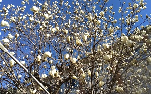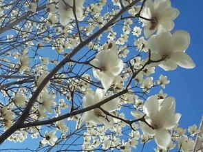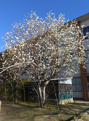 白いモクレンの花がたくさんついています。2日前よりも本格的に花を大きく開きました。立派なモクレンです。長きに渡り、三宅っ子の成長をずっと見続けてくれた木の1つです。
