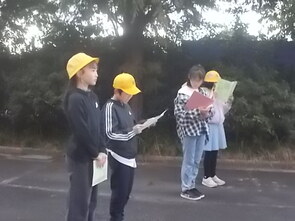 今日は午前中の時間の多くを秋見つけに使うようです。校庭の中で秋を探しました。