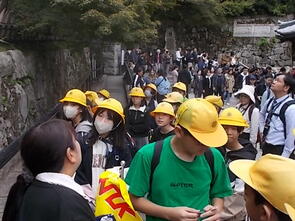 傘を開くこともなく、また過ごしやすい天候にも恵まれ、、順調に行程を歩むことができました。6年生にとって、とても楽しく充実した2日間を過ごすことができました。忘れられない素敵な時間を送ることができた思います。金・土曜日の日程で、修学旅行生がかなり少ない環境でした。一方で外国からの旅行者は多い印象でした。6年生は、伝統や歴史が詰まった訪問地をバスガイドさんの説明を聞きながら、そして景色や町並み文化を楽しみながら学び進みました。日常から離れた土地をクラスメートとゆっくり過ごす時間も貴重なものだったようです。