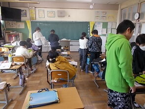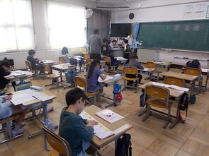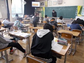 4年生は、落ち着いて社会のテストに取り組んでいました。