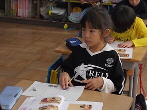 説明文の単元「すがたをかえる大豆」に取り組んでいました。段落ごとに、丁寧に読み取る学習です。興味深い教材内容に触れながら、国語を学んでいます。