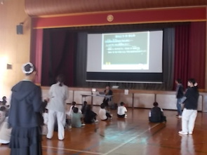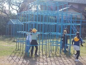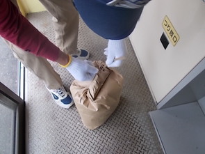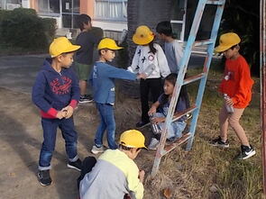 5年生が、ミヤケ・モジュール・タイムで救助袋で避難する体験をしました。下級生は「いいなぁ。」と話しながら登校していましたが、5年生は緊張と新しいことへの期待いっぱいの表情で行いました。やってみて感じたことを互いに伝え合っていました。