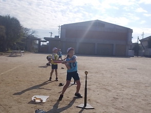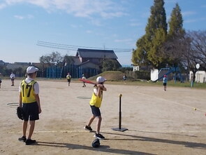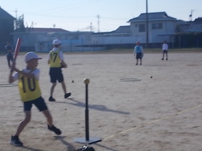 豪快にバットを振っていい打球を伸ばしていました。慣れない子も何度も練習するうちに打てるようになりました。