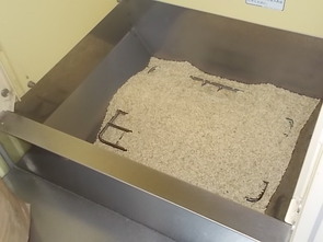 地域の皆様のご協力を得て、午後に脱穀を行いました。千歯こき体験、脱穀機を使った体験、唐箕体験、コンバインの見学を行いました。昔の農作業法を体験し、地域の方々に知恵を教えていただきました。最後は、一つかみの一把や一束、稲穂、稲わら、籾、玄米といった言葉を具体物を見ながら、子どもたちは学ぶことができました。次は籾すりです。