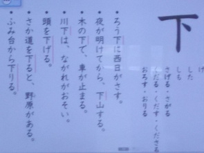 「下」という文字だけで、さまざまな読み方があるのが日本語です。まさに日本国語の勉強ですね。さまざまな読み方があることを楽しみながら学習しました。