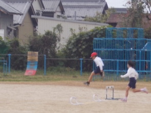 ハードルを飛び越えて走る学習をしました。踏み切りや体を巧みに使うこと、ハードルとの距離を目測して体を動かすこと、速く走るために体の位置や振り下ろす足を意識するなど、成長過程にある子どもたちに求められることが多い種目です。考え、意識し、まねて自分の動きに反映させるなど、思考力も鍛えられると思います。4年生のみなさん、がんばってください。