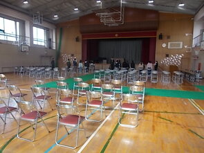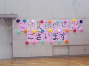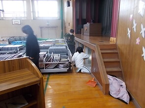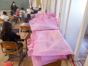 4・5年生で式場準備、卒業生教室の飾り付けを行いました。よい式になりそうです。
