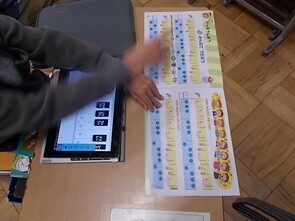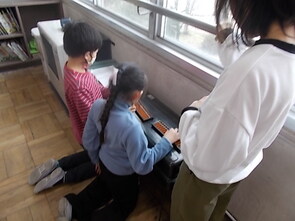 タブレット端末を使って鍵盤の練習を各自でしていました。徐々に難しい曲に挑戦する様子が見られました。真剣に取り組む様子が素敵でした。