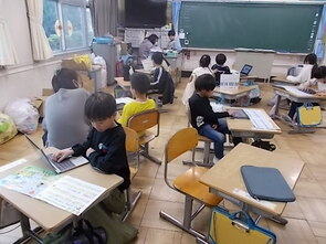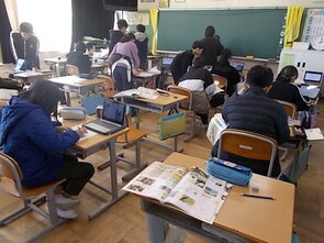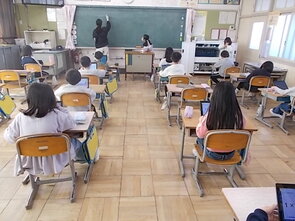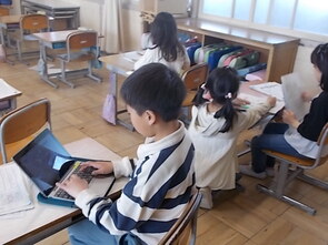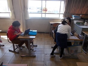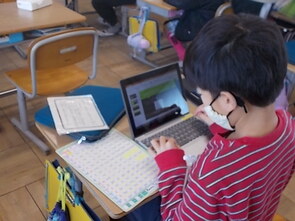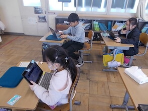 3年生も漢字の総復習をしていました。漢字の学習を終えた子から、タブレット端末でタイピングの練習を進める子の姿もありました。