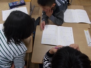 1年生・2年生は、ともに算数で「もうすぐ2年生」もうすぐ3年生」というテーマのもと、本年度の算数学習の復習をしました。