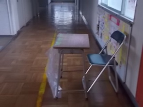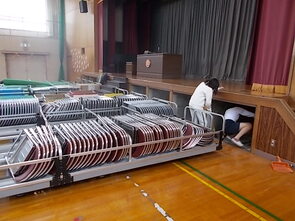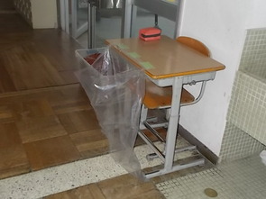 児童会担当の先生が机や椅子、ビニル袋を用意してみえました。明日は、朝一番に児童会がエコキャップを回収する活動を予定しています。