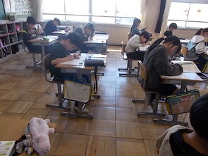 6年生は、国語の時間でテストを通して、学習のまとめをしました。