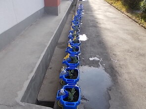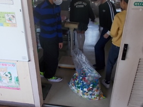 登校後に速やかにエコキャップ回収を行いました。今学期の回収数量は、12.9kgにものぼったそうです。集められたエコキャップは社会貢献に使われます。