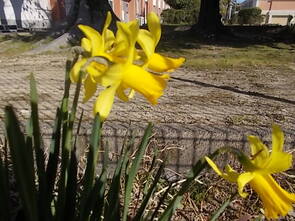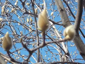 校舎南東、観察池の脇に立派なモクレンの木が根付いています。数え切れないほどの花が一気に咲こうとしています。校舎南の側溝近くには、低学年が育てているチューリップが先日の暖かさに誘われて芽を出してきました。いよいよ、本格的な春です。