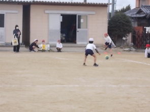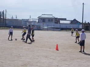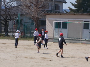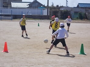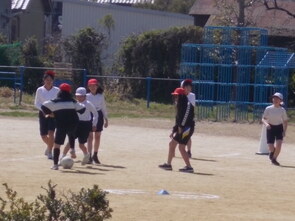 ルールにも慣れて、ゲームを楽しむ様子が見られました。仲間のチームメートのいいプレーに飛び跳ねる3年生の姿がかわいらしかったです。