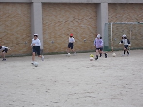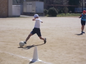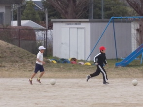 お昼に近づくにつれて、気温も上がってきました。5年生は運動場でサッカーをしました。