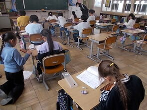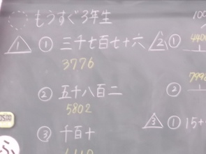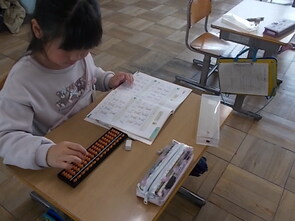 4年生の理科室と打って変わって、こちら3年教室は、また違った集中力に満ちた空間になっていました。そろばんを使って計算する練習を一生懸命に行いました。