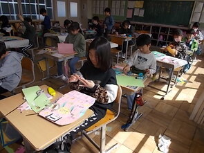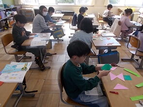 4年生が、周りの人に向けた感謝や気持ちを込めたメッセージを届ける学習をしました。1人1人が創意工夫をして、カードづくりに励んでいました。