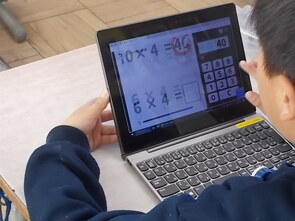 タブレット端末で九九アプリを使って練習に励みました。