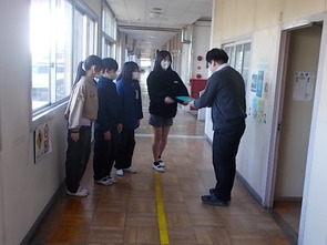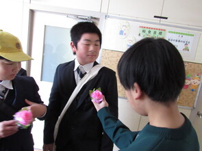 校内のそこかしこで、6年生のみなさんがメッセージカードを持って、教職員のみなさんに感謝の言葉を伝えました。