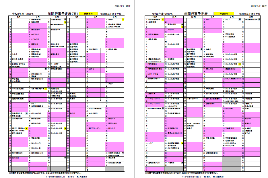 令和8年度年間行事予定表(案)