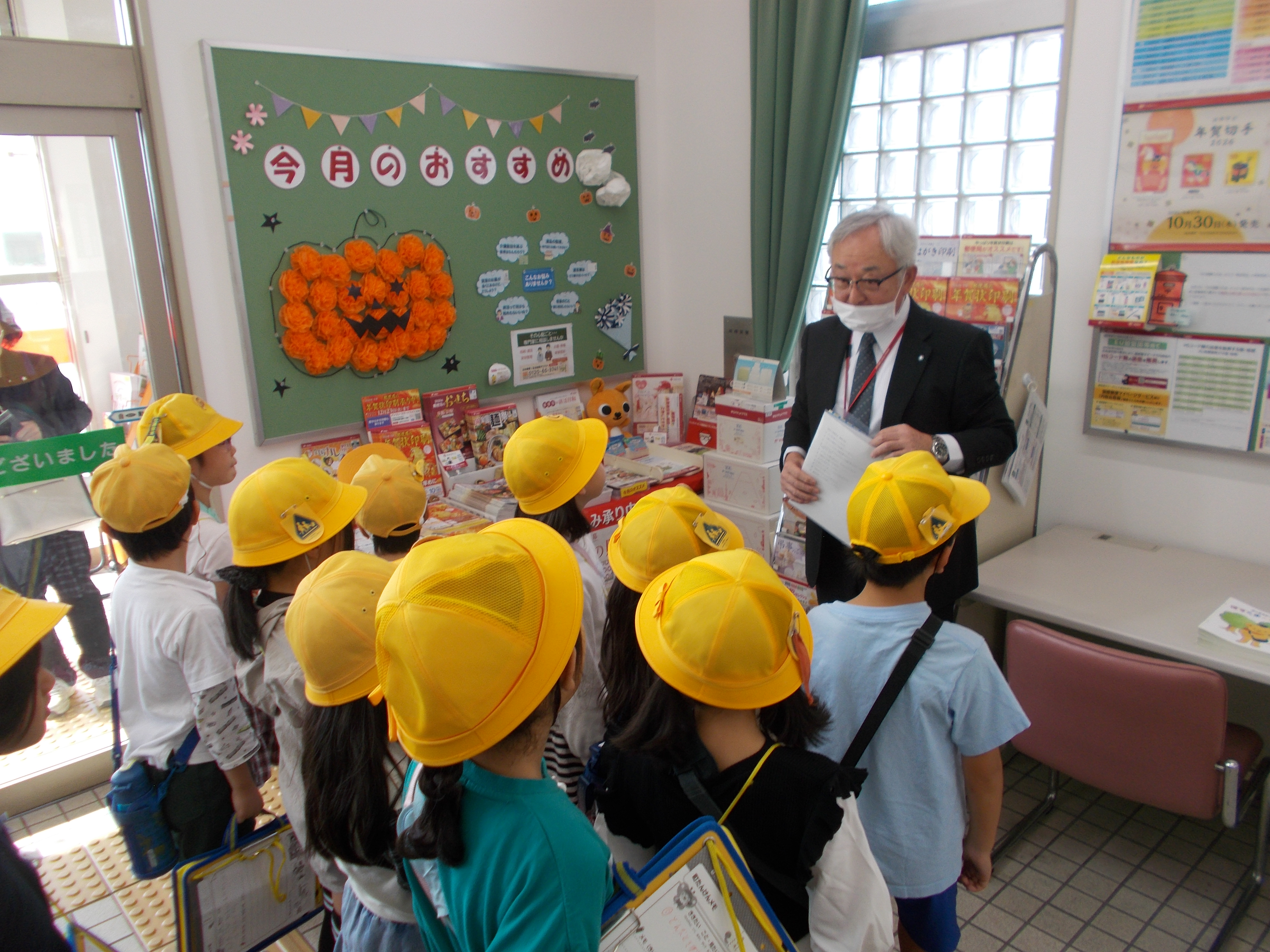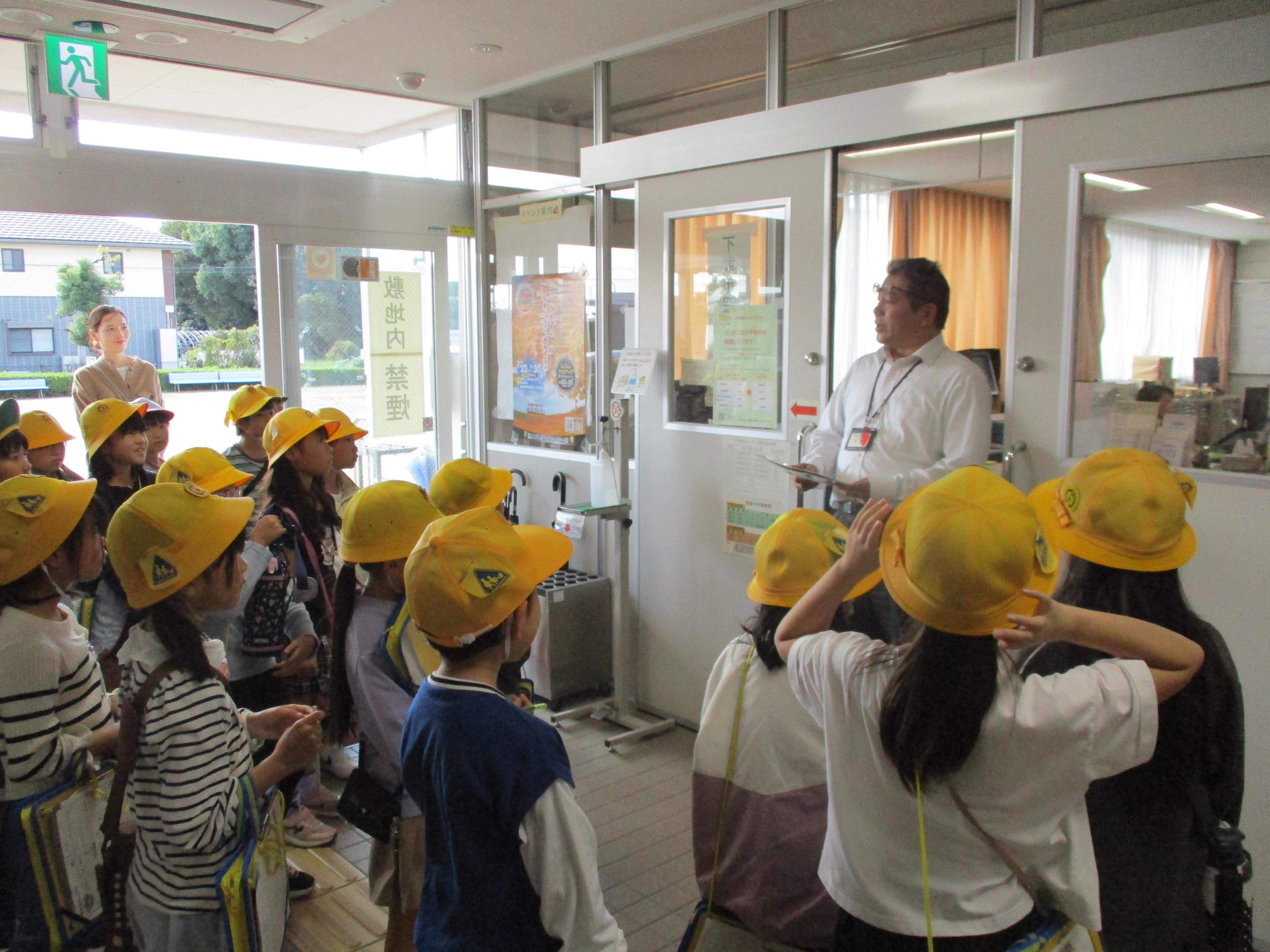 町探検(10月27日) 2年生が町探検を行いました。施設の方から話を聞き、インタビューをしました。 施設の方の話を興味津々に聞く子どもたちの姿が見られました。 施設の方や保護者ボランティアの方々にご協力いただき、ありがとうございました。 ・下津交番 ・下津市民センター ・阿弥陀寺 ・稲沢下津郵便局 ・JA愛知西農協産直広場下津店 ・下津ガソリンスタンド