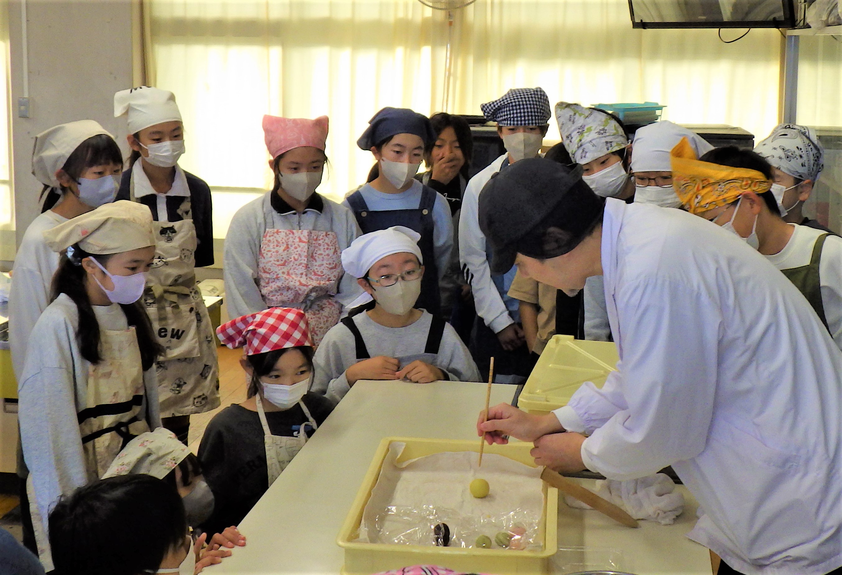 和菓子づくり(11月4日) 和菓子職人をお招きし、6年生が和菓子づくりを体験しました。 職人の素晴らしい技術を見せていただき、児童もさくら、きく、うぐいすの練り切りに挑戦しました。日本の伝統文化にふれる大変貴重な体験ができました。