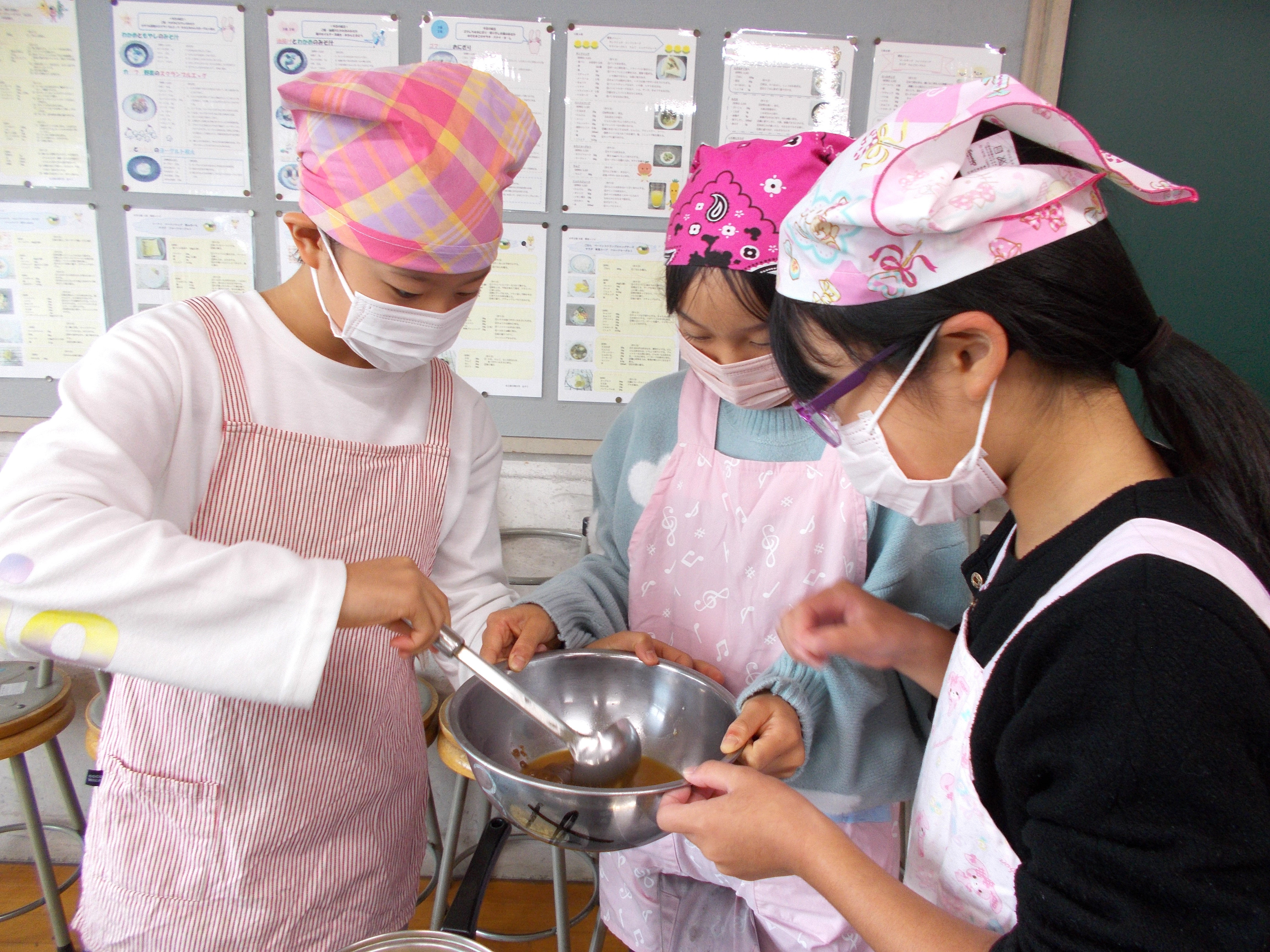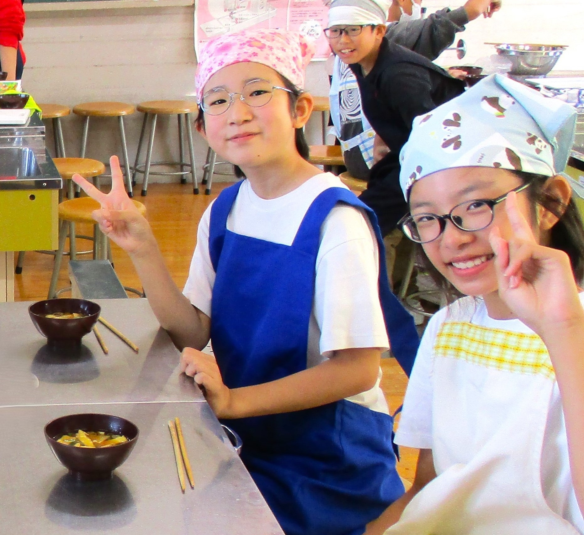 調理実習(11月5日 7日) 5年生が家庭科「食べて元気!ご飯とみそ汁」の学習で、調理実習を行いました。 にぼしで出汁をとり、大根、ネギ、厚揚げ入りのみそ汁を作りました。 切り方や火加減、ゆで時間など、さまざまなことに注意して、おいしいみそ汁を作ることができました。