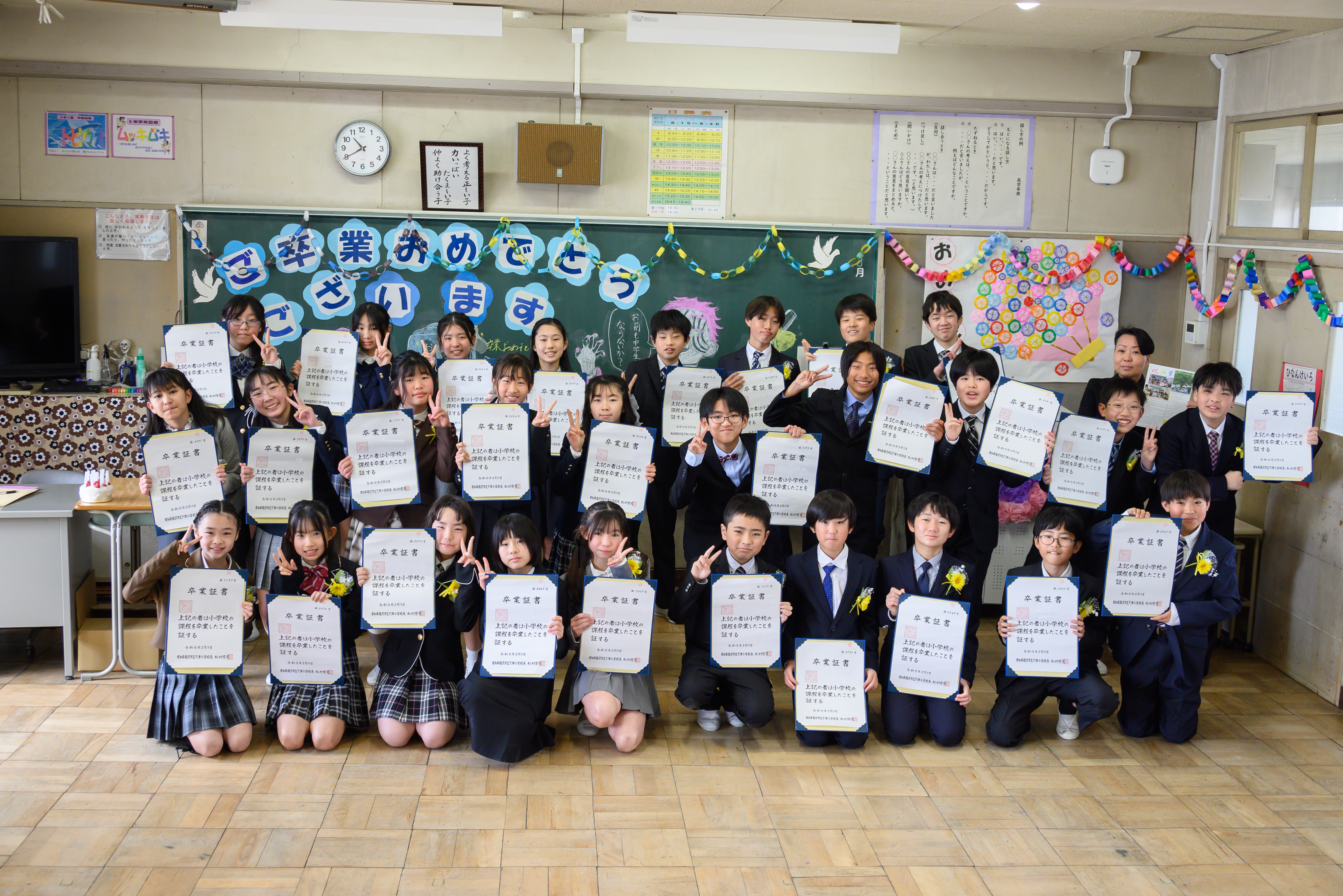 本日、6年生114名が小学校を立派に卒業しました。