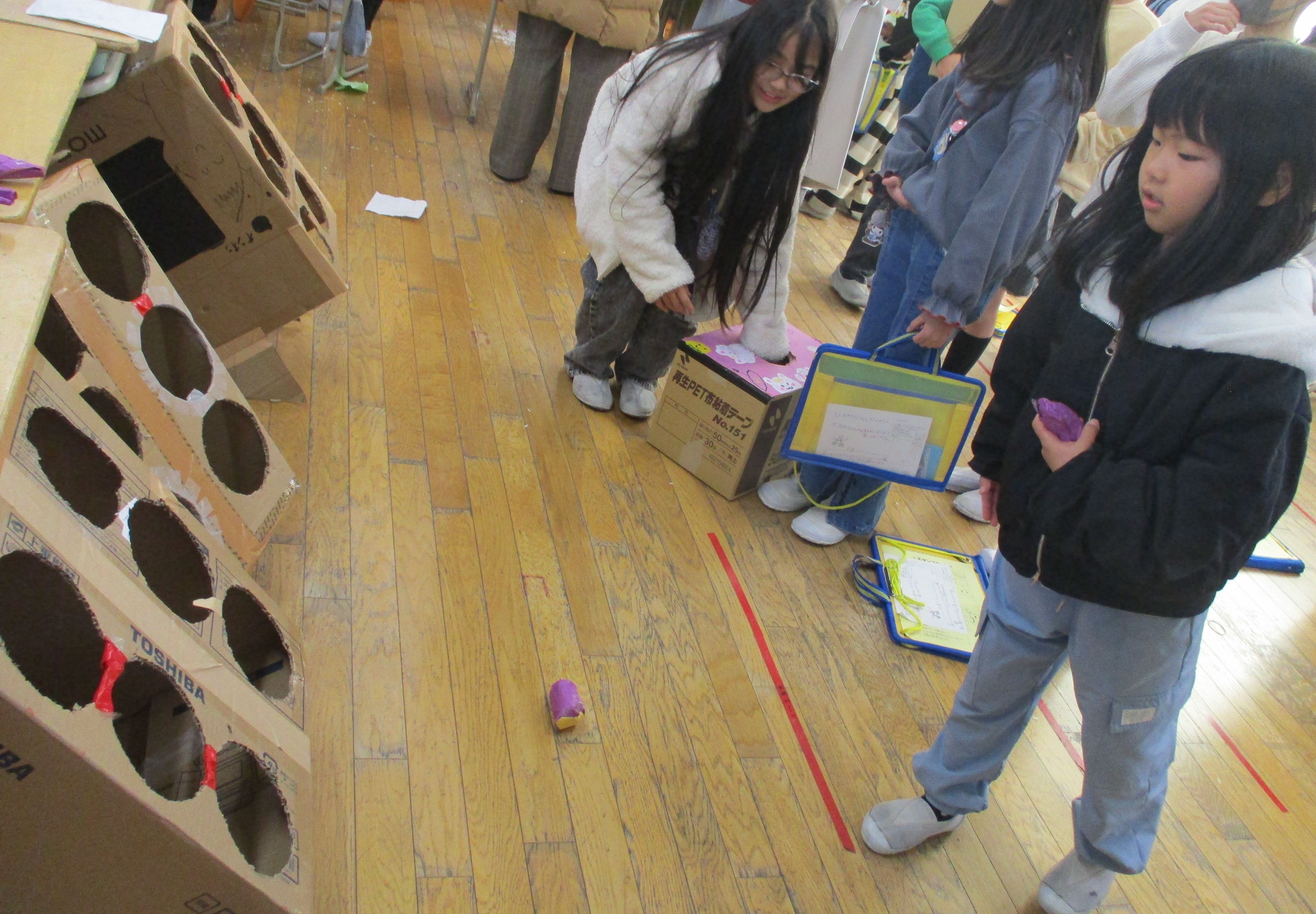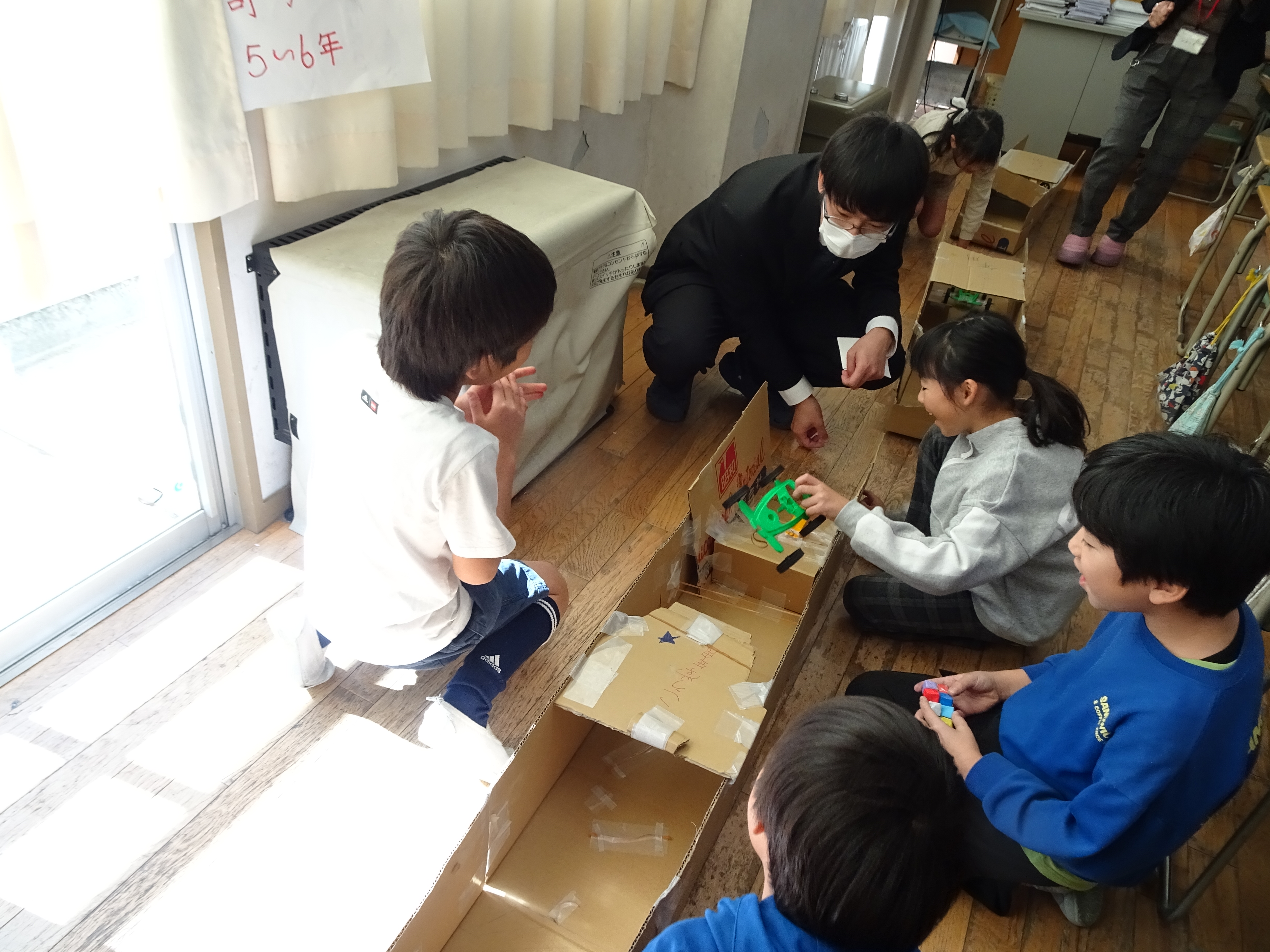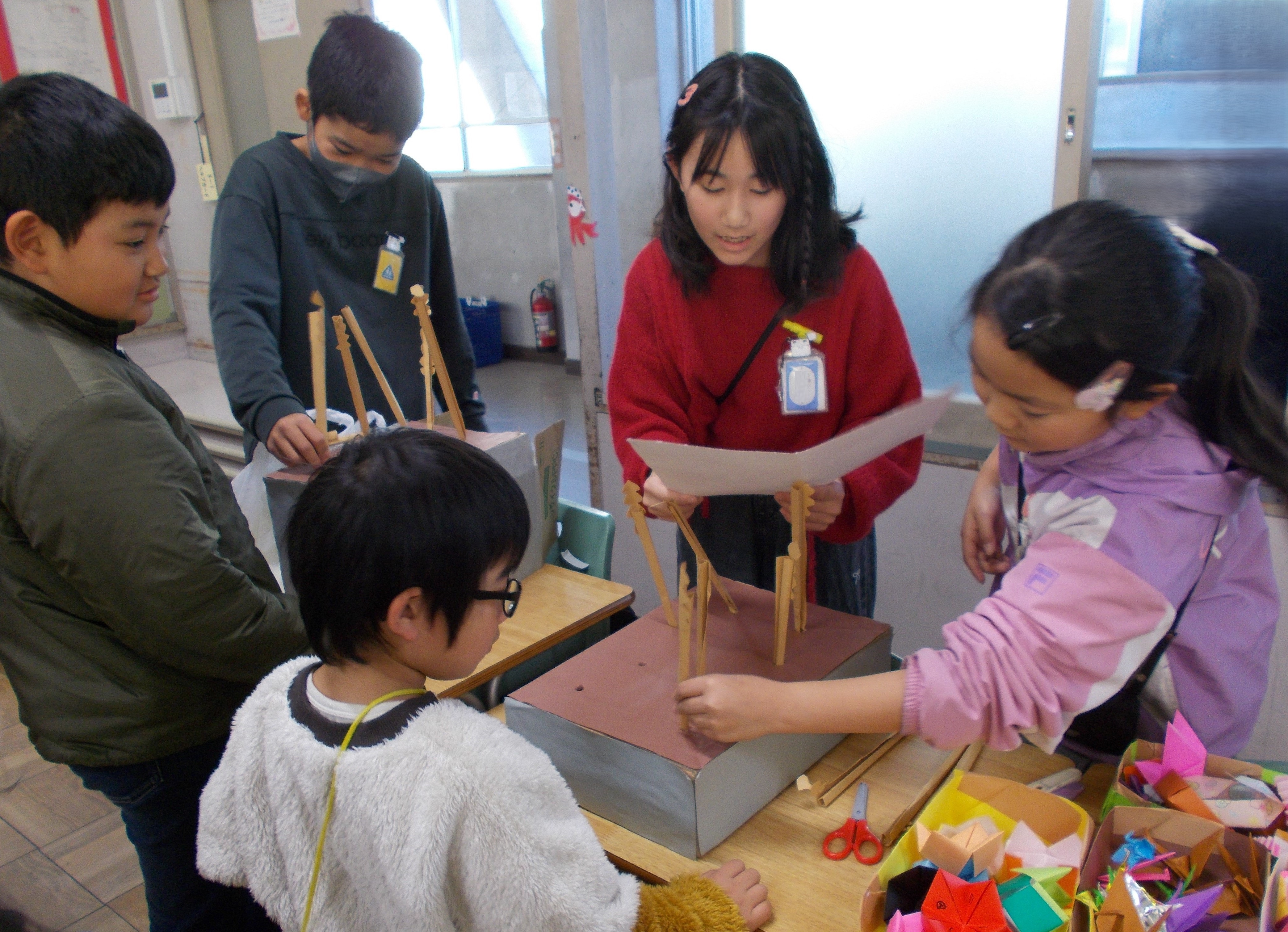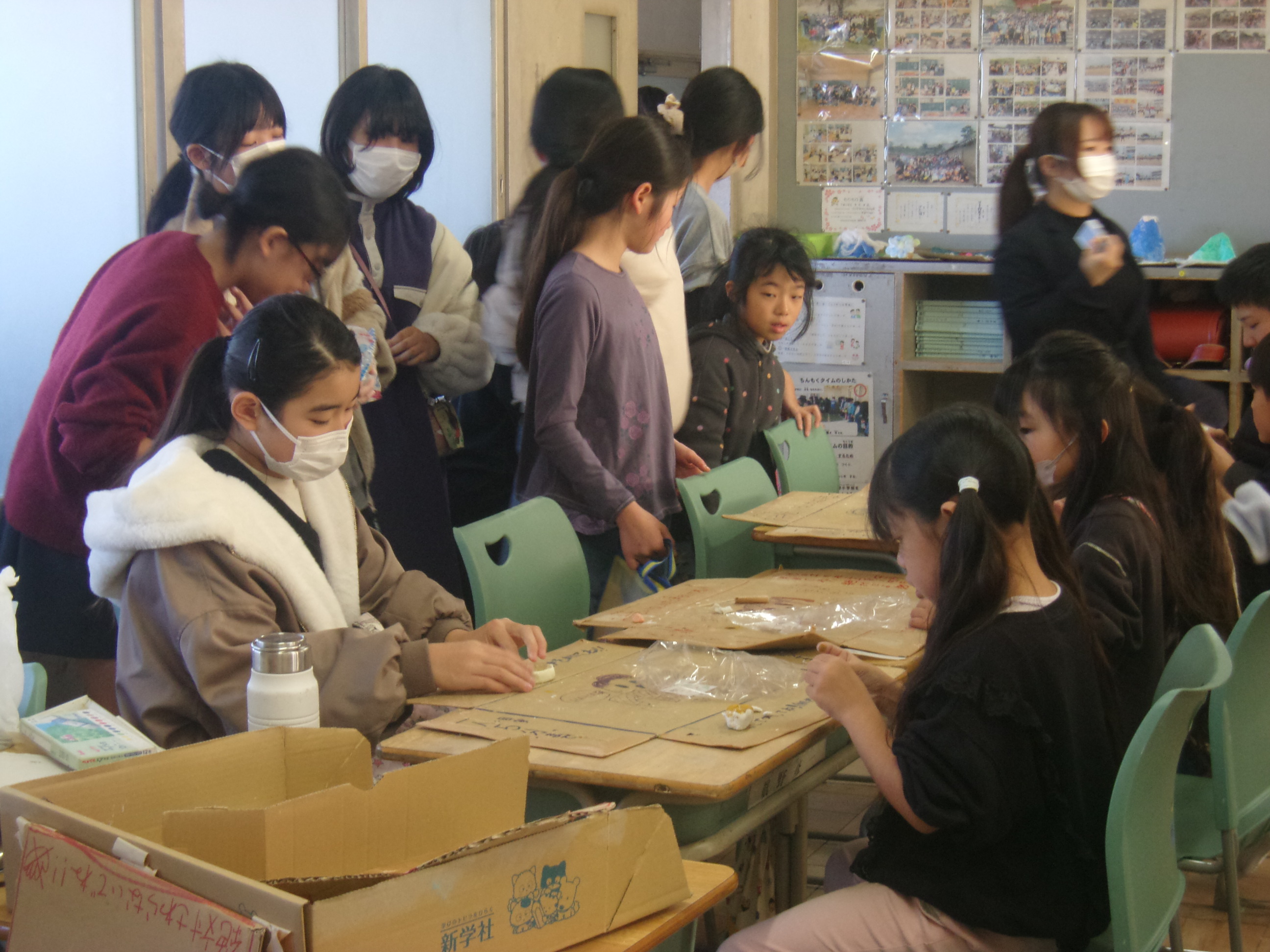 防災教室(1月30日) 防災ボランティア稲沢の方6名をお招きし、5年生が防災について学習をしました。「新聞紙のスリッパ作り」「簡易トイレ作り」「応急担架作り」などの体験を通して、災害に備えることの大切さを学びました。