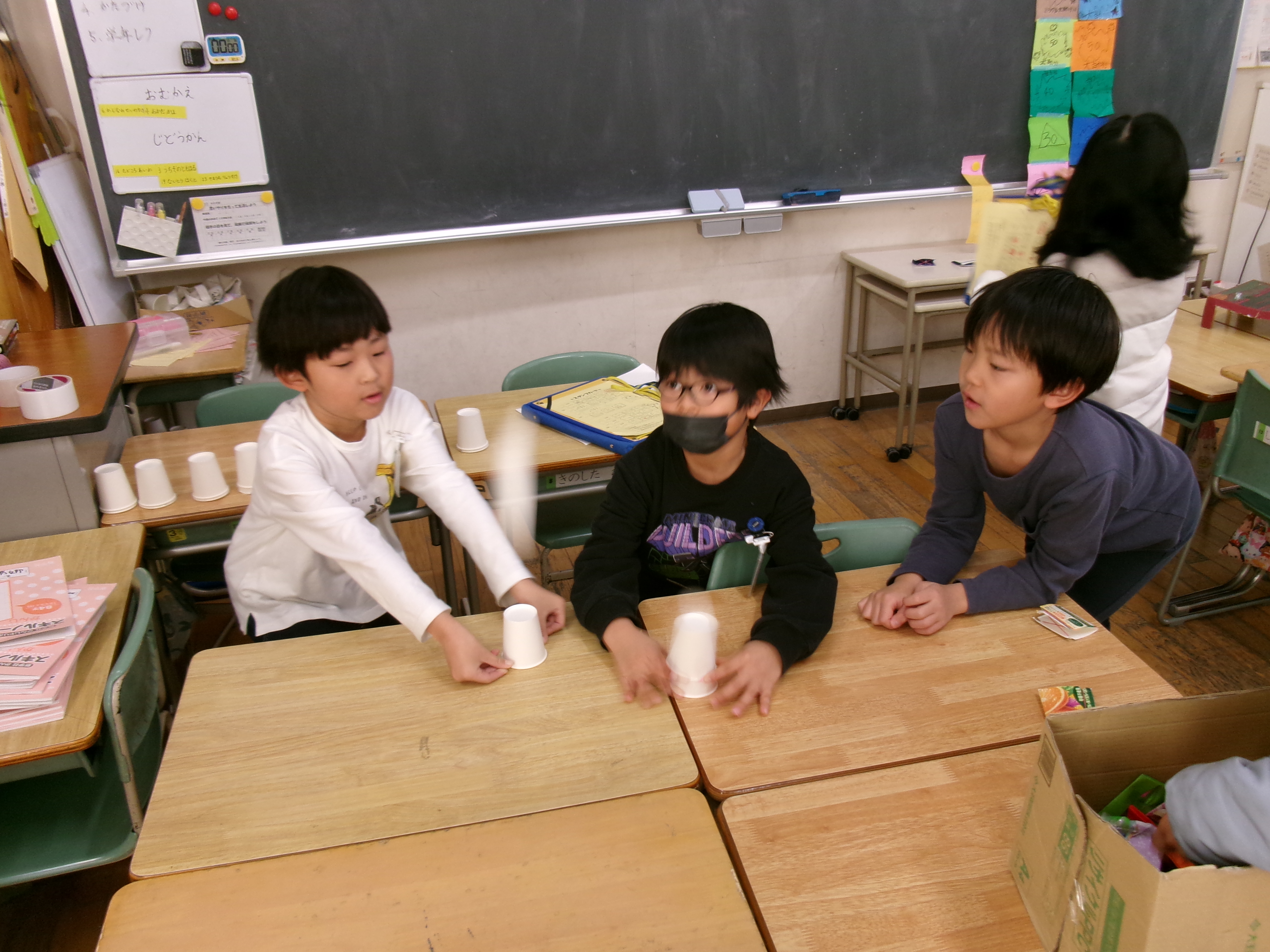 2年生 パネルシアター(7月11日) プラスワンの時間に、いつも読み聞かせにきてくださる「おりひめの会」の方々によるパネルシアターの上演がありました。 子どもたちは、真剣なまなざしで聞いたり笑ったりしながら、お話の世界をたっぷり味わうことができました。