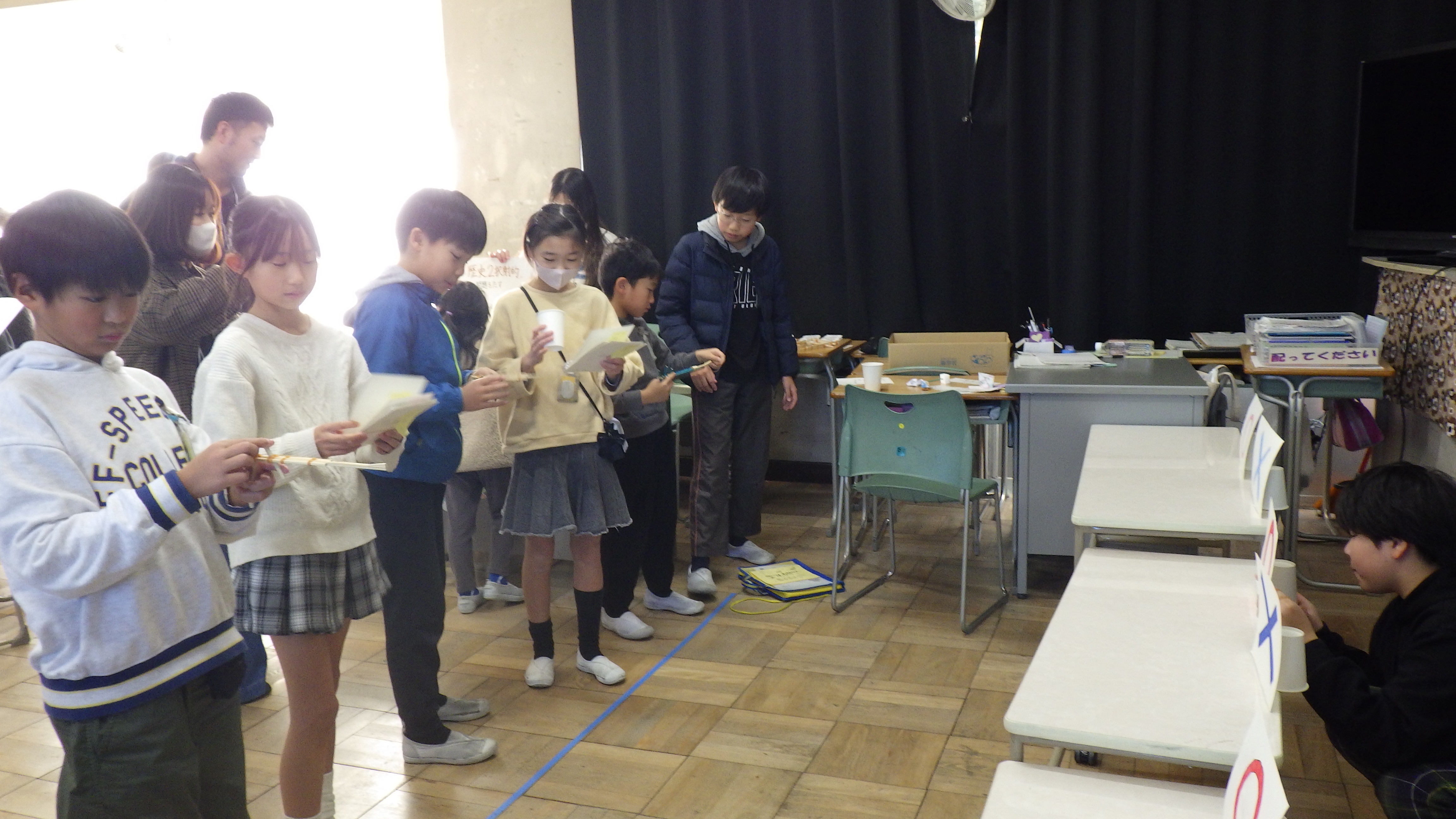 おもしろ実験教室(8月20日) 4・5・6年生の希望者を対象に、下津市民センターで「おもしろ実験教室」が開かれました。名古屋文理大学サイエンスサークルの学生の皆さんによるサイエンスマジックショーをみたり、科学工作やおもしろ実験などの体験活動に参加したりして、楽しく学ぶことができました。