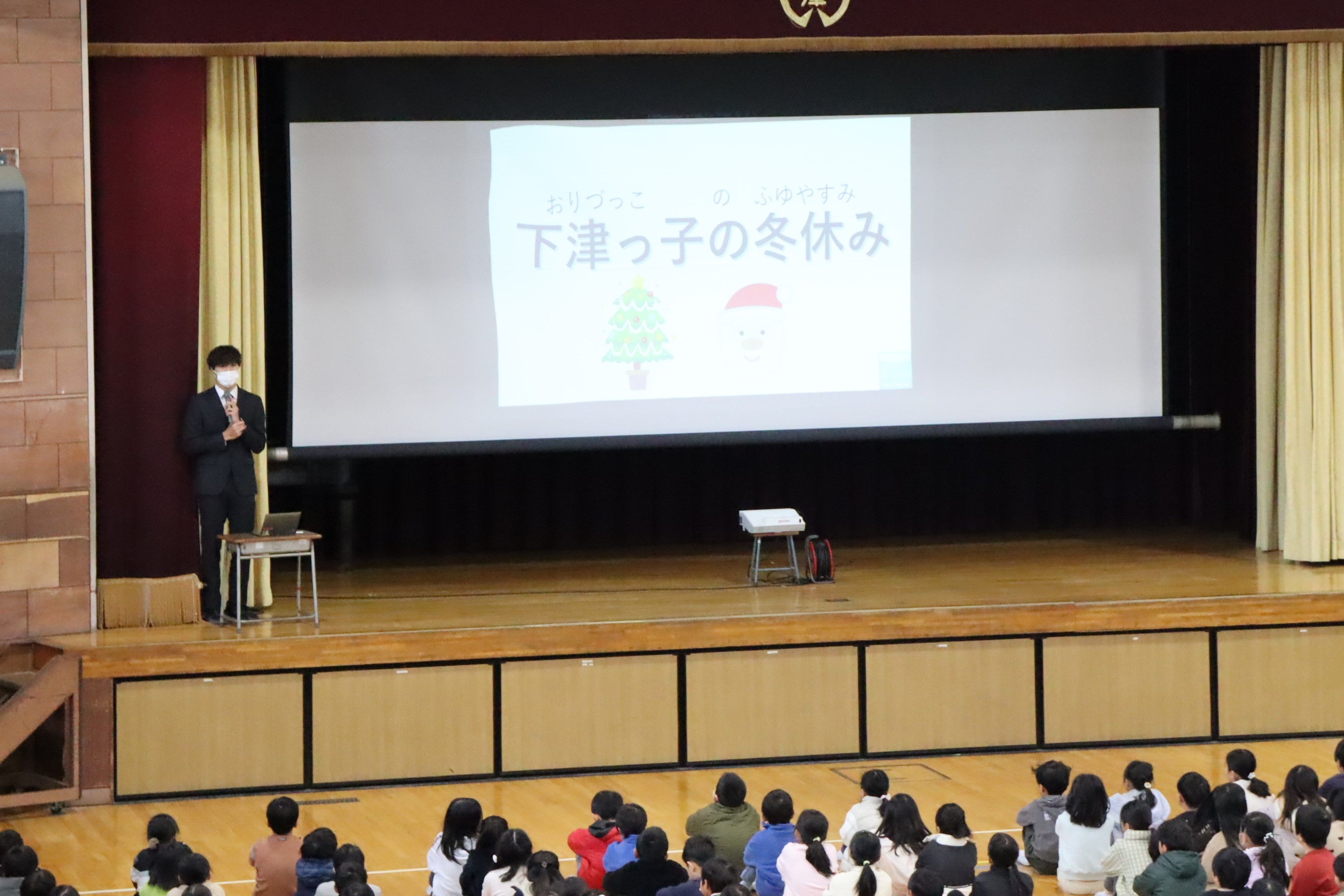 2学期終業式(12月23日) 2学期のしめくくりとして、終業式が行われました。 校長先生からは、2学期に大切にしてきた「努力」「挑戦」「凡事徹底」についてのお話がありました。 生徒指導担当の先生からは、冬休みの過ごし方について「命を大切にしよう」「リズムよい生活をしよう」というお話がありました。 3学期も、仲間とともにがんばりましょうね!
