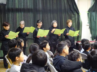 読み聞かせボランティア団体「きらら会」から8名の方にお越しいただきました。隔年で子どもたちが鑑賞できるように、2日間の日程で2・4・6年生を対象に人形劇を6公演行っていただきました。
