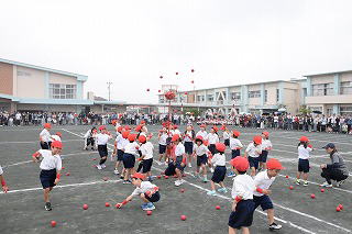 4月22日(水)、「1年生を迎える会」を開きました。1年生は6年生の児童が作ってくれたアーチの中をくぐって入場後、自己紹介で名前と自分の好きなものを元気よく発表しました。その後、各学年から励ましの言葉と出し物のプレゼントをもらいました。2年生からはアサガオの種を、3年生からはメダルを、4年生からは「さとピー」の手作り下敷きを、5年生からは○×ゲームで、6年生からはジャスチャーゲームで学校のことを教わりました。最後は、全校児童で元気よく校歌を歌いました。これから1年生が元気よくすくすくと育っていくことを期待しています。