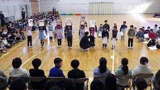3月4日(水)に5年生の児童会役員が中心になって進めていた「卒業生を送る会」を行いました。前期と後期の児童会役員みんなで司会進行をして、各学年から6年生への感謝の気持ちを表した出し物を発表しました。