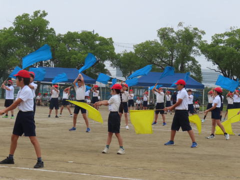 高学年 表現(フラッグ演技)の様子  |