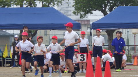 ![]() 低学年 競争遊戯「玉入れ」の様子  |