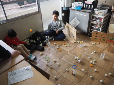 赤6「ピンポン球を入れてパズルを完成させろ!ピンバズ!」 ピンポン球を、ペットボトルに投げ入れ、隠されたパズルのピースを探し、パズルを完成させました。 |